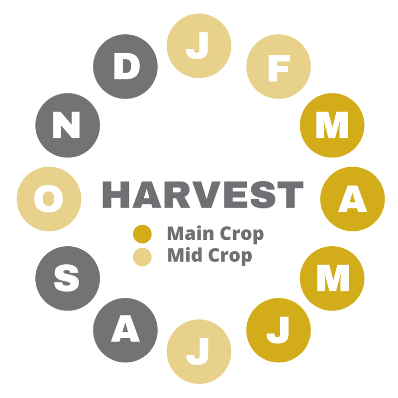 Composición varietal: Mezcla de hibridos y clones (10% blanco; 20% lila)