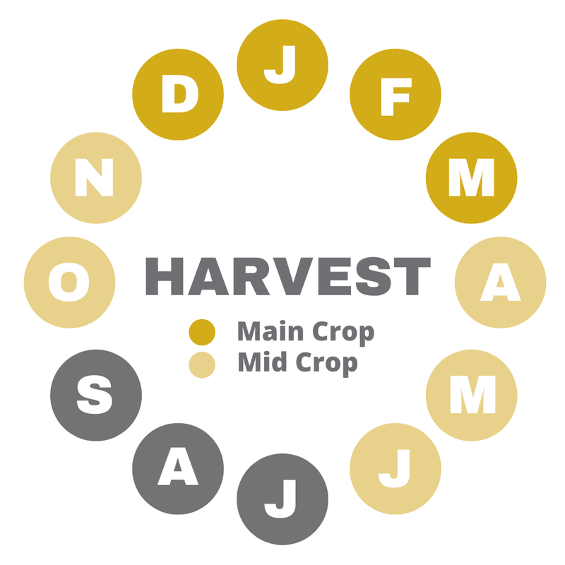 Composición varietal: Mezcla de hibridos y clones (20% blanco; 25% lila)