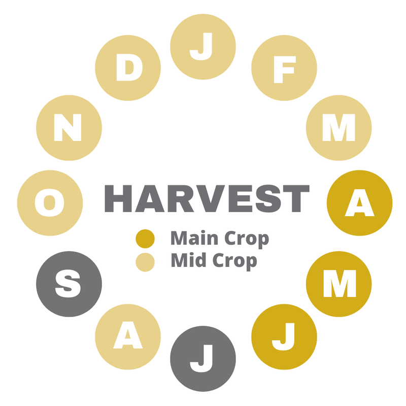 Composición varietal: Mezcla de clones modernos (10% blanco; 35% lila)