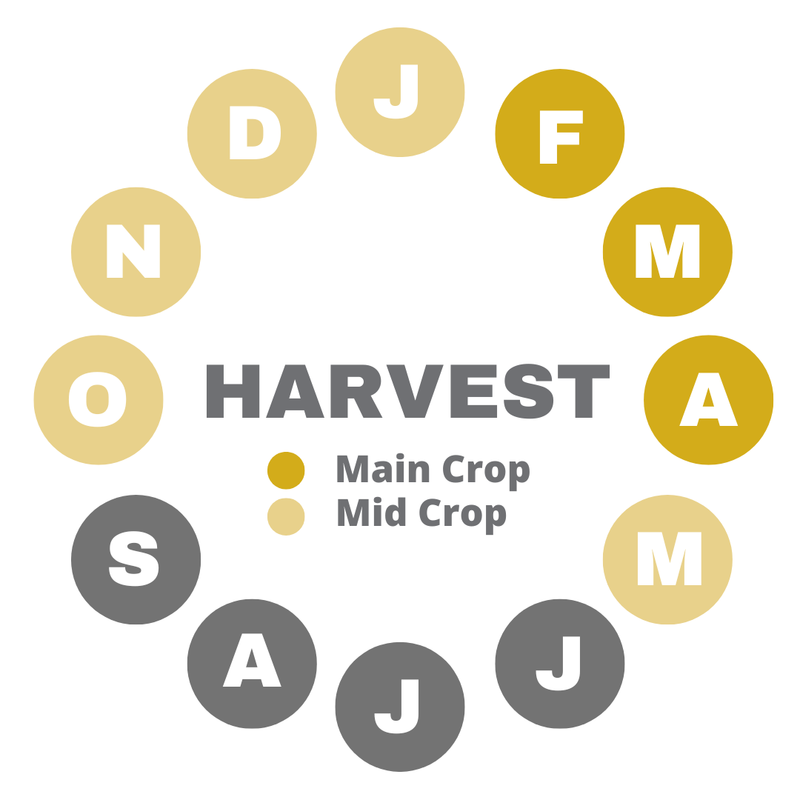 Composición varietal: Mezcla de hibridos y clones (15% blanco; 20% lila)